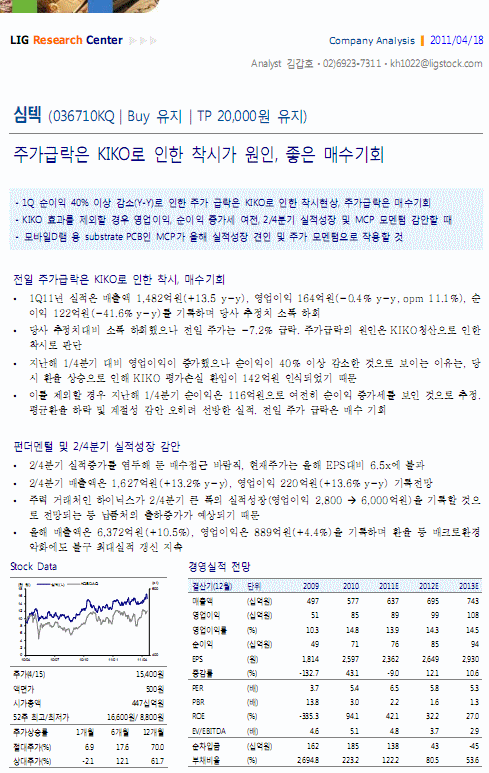 주가급락은 KIKO로 인한 착시가 원인, 좋은 매수기회 - LIG투자증권