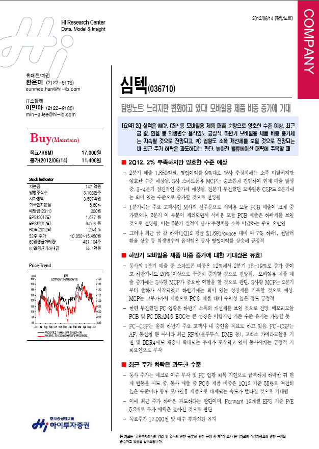 느리지만 변화하고 있다! 모바일용 제품 비중 증가에 기대 - 하이투자증권