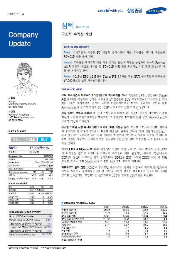 모바일향 매출 확대로 2013년 실적 개선을 기대하다 - 대신증권